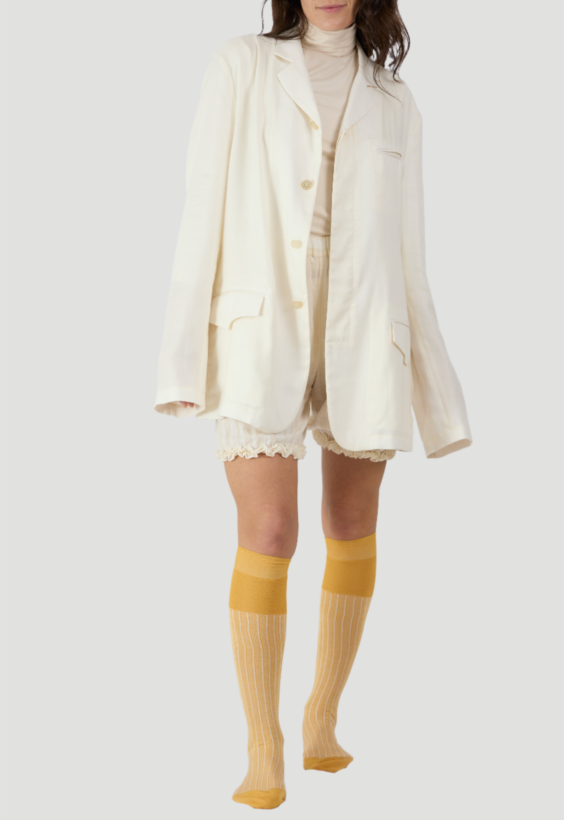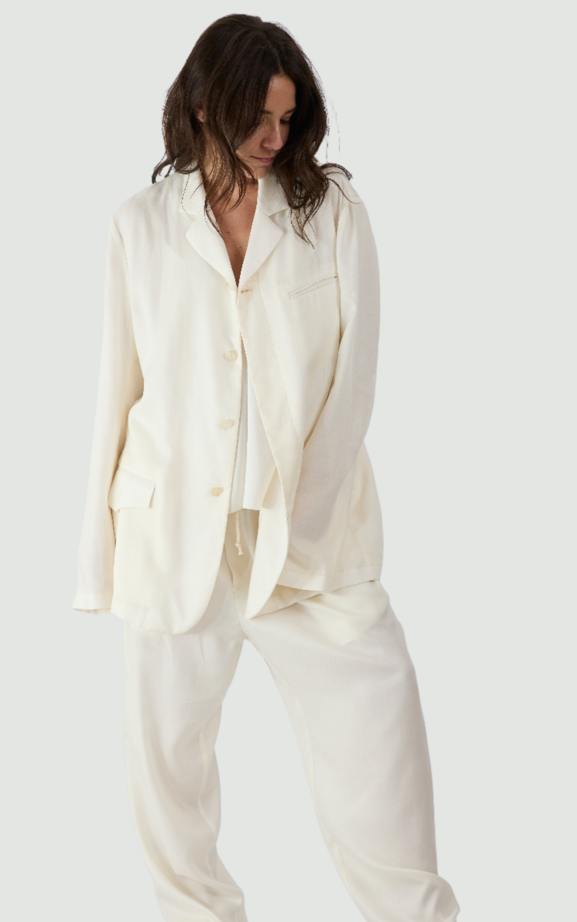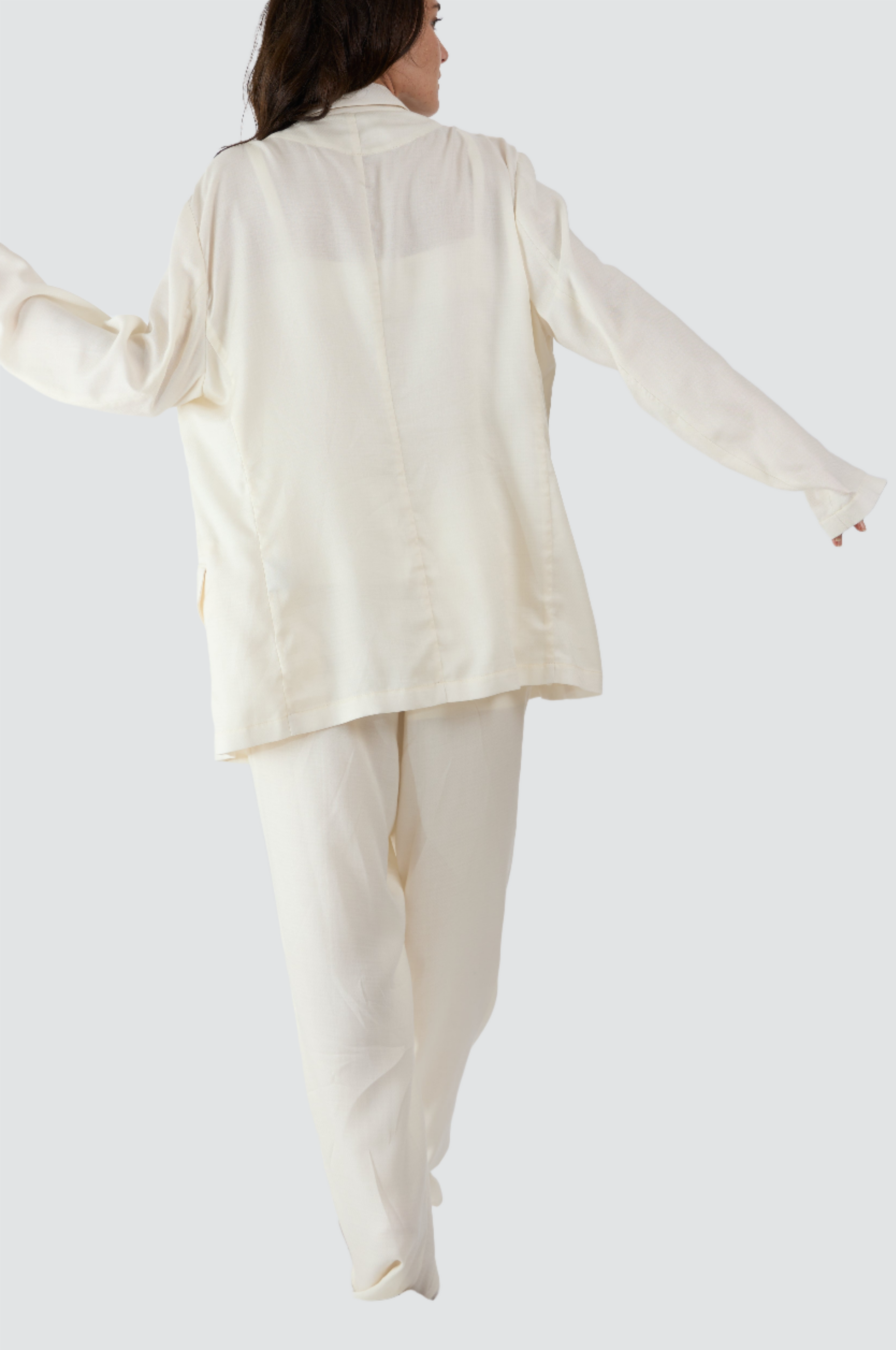 Blazer sfoderato e leggero che unisce eleganza e comfort in un design unico caratterizzato da un bavero alto e bottoni nascosti per un look elegante e moderno. Le funzionali tasche con patta aggiungono un tocco di praticità, rendendolo perfetto sia per le occasioni casual che per quelle formali. Il taglio sartoriale e maschile assicura una silhouette sofisticata che si adatta a qualsiasi stile e genere.