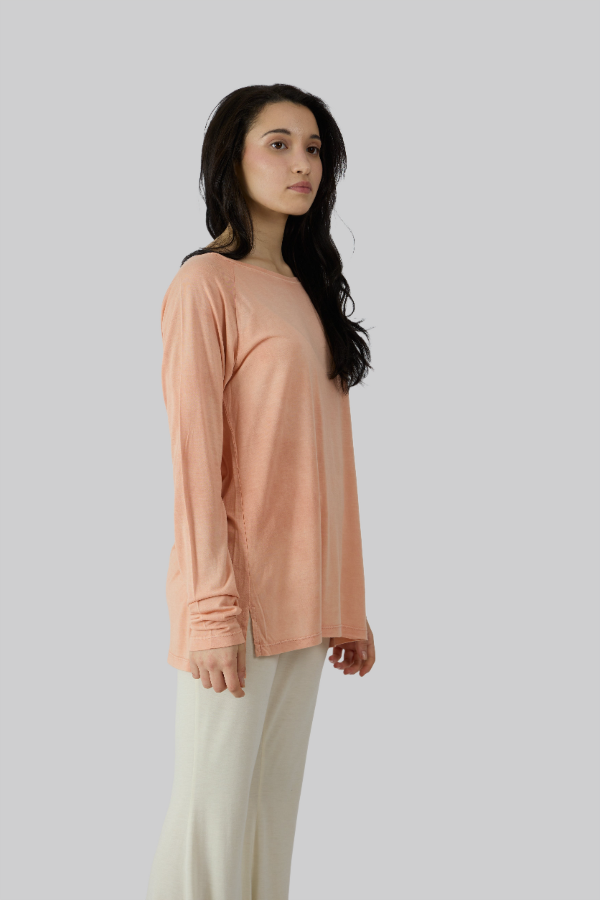 Long-sleeve t-shirt with soft jersey of seaweed and eucalyptus. Our t-shirts are made to be worn directly against the skin, delivering all the benefits of algae and the vitamins found in natural colors. Wearing them will make you feel incredibly free, alive, and in touch with nature.
