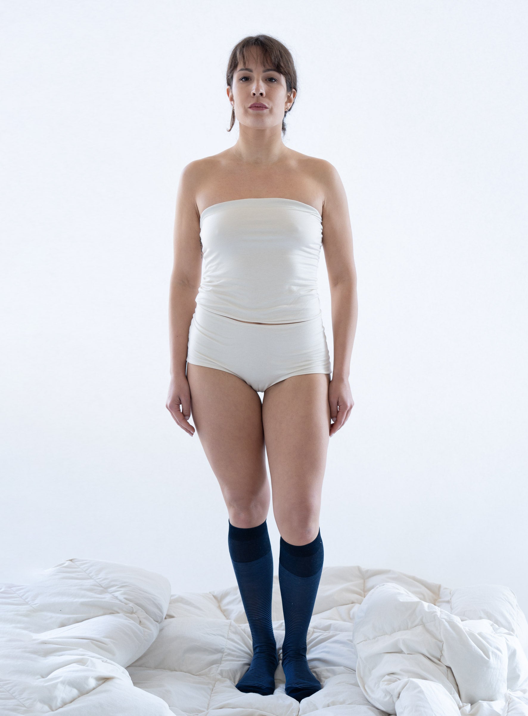 Made of seaweed and eucalyptus soft jersey, our bandage adapts to every shape and can be used as underwear or a summer top. Thanks to the lined structure, it is designed to give you support and freedom of movement.
